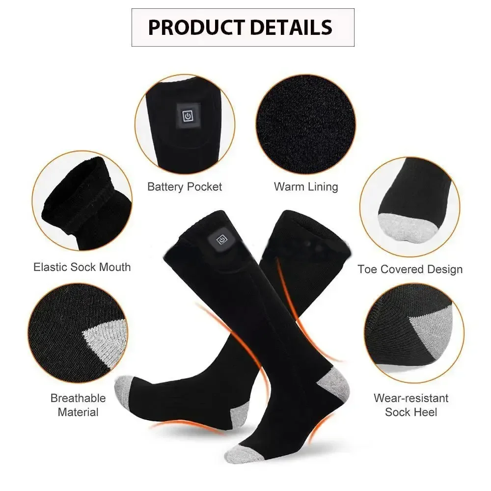Heating Socks with Battery Box Rechargeable Anti-Cold Men Thermal Heated Foot Warmer Outdoor Camping Ski Sports Winter